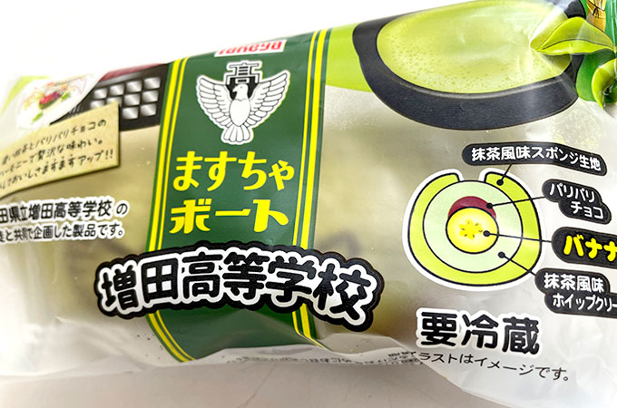 HOME > バナナボート一族 > バナナボート一族 抹茶バナナボート 2025年11月4日 バナナボートは色々な味の新作が登場します。 ぜんぶおいしいけれど、やっぱりスタンダードがいちばん好きだなぁ〜と、スタンダード以外のバナナボートを何度も買うことはありませんでしたが、ついに、リピートバナナボートと出会ってしまいました。 それがこちら、 秋田県の増田高校とコラボした、抹茶のバナナボート「ますちゃボート」です。 抹茶スポンジに抹茶クリーム、パリパリチョコとバナナ。 定番にしてほしいです。心から。 -バナナボート一族